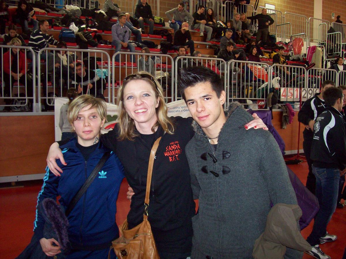 L'ASD SANDA WARRIORS B.S.T. CHE SI ALLENA IN PARTICOLAR MODO NELLE STRUTTURE DELLA LIBERTAS DI SESTO AL REGHENA (PN) HA SFORNATO 3 ARGENTI. PURTROPPO FRANCESCA (1' INCONTRO DI DOMENICA 27) ANCHE SE BEN PREPARATA E ALLENATA SI FA PRENDERE DA UN BLOCCO EMOTIVO E LASCIA L'ORO ALLA SUA AVVERSARIA. INVECE UN GRANDISSIMO GIANNI MILAN (4' INCONTRO DI DOMENICA 27) CHE MALGRADO LA SUA STANCHEZZA, IL PESO SUPERIORE ED ESPERIENZA DEL SUO AVVERSARIO, DA' IL MASSIMO ARRIVANDO AL 3' ROUND SFINITO E PERDENDO PER POCHI PUNTI... ANCHE SE IL 1' ROUND CONTESTABILE PERCHE' MERITATISSIMO ALLO STESSO MILAN. RICEVE MOLTI COMPLIMENTI, PER LA SUA TECNICA E DETERMINAZIONE, E SARA' SICURAMENTE CONVOCATO NEL 2012 CON GLI ATLETI AZZURRI PROBABILMENTE PER QUALCOSA DI PIU' GRANDE. EMOZIONE UNICA PER GIANNI, STEFANIA E I SUOI GUERRIERI DEL SANDA! PER QUANTO RIGUARDA L'INSEGNANTE E PRESIDENTE DELLA STESSA ASD STEFANIA BARON, QUI CONCLUDE LA SUA CARRIERA AGONISTICA CON UN ARGENTO SUDATO, DATA LA SUA CONDIZIONE FISICA DEL MOMENTO E LA RESPONSABILITA' ENORME DEI SUOI ATLETI A QUESTA GARA IMPORTANTE, OLTRE AL FATTO CHE NEL PROSSIMO DICEMBRE L'ETA' AGONISTICA PER IL CONTATTO PIENO PER LA STESSA STEFANIA GIUNGERA' AL TERMINE. STEFANIA CONTENTA DEL RISULTATO TENENDO CONTO DI TUTTO E DI BEN 2 INCONTRI DISPUTATI (SABATO 26 E DOMENICA 27), SEGUITA DALL'ISTRUTTORE DOMENICO APPOLONIA (SHAOLIN CLUB BS E VR) LASCIA I GUANTONI AL CHIODO COME AGONISTA PER PREPARARE LA SUA ASD E I SUOI GUERRIERI AGLI AVVENIMENTI FUTURI, DATO CHE IL CALENDARIO 2012 SI PROSPETTA PIENO DI GARE ED ATTIVITA'. UN RINGRAZIAMENTO PARTICOLARE VA AL GRUPPO LIBERTAS ALBATROS DI SESTO AL REGHENA CHE CREDE IN QUESTA DISCIPLINA CHE STA' CRESCENDO SEMPRE PIU' POSITIVAMENTE E SUPPORTA IL CORSO DI SANDA E DIFESA PERSONALE. UN ALTRO RINGRAZIAMENTO VA' AGLI AMICI E ALLIEVI CHE HANNO SOSTENUTO STEFANIA, GIANNI E FRANCESCA ANCHE SE NON PRESENTI ALLA COMPETIZIONE E ALLA PALESTRA DI JUDO AZZANO X PER LO SPAZIO PER GLI ALLENAMENTI DEL LUNEDI'.